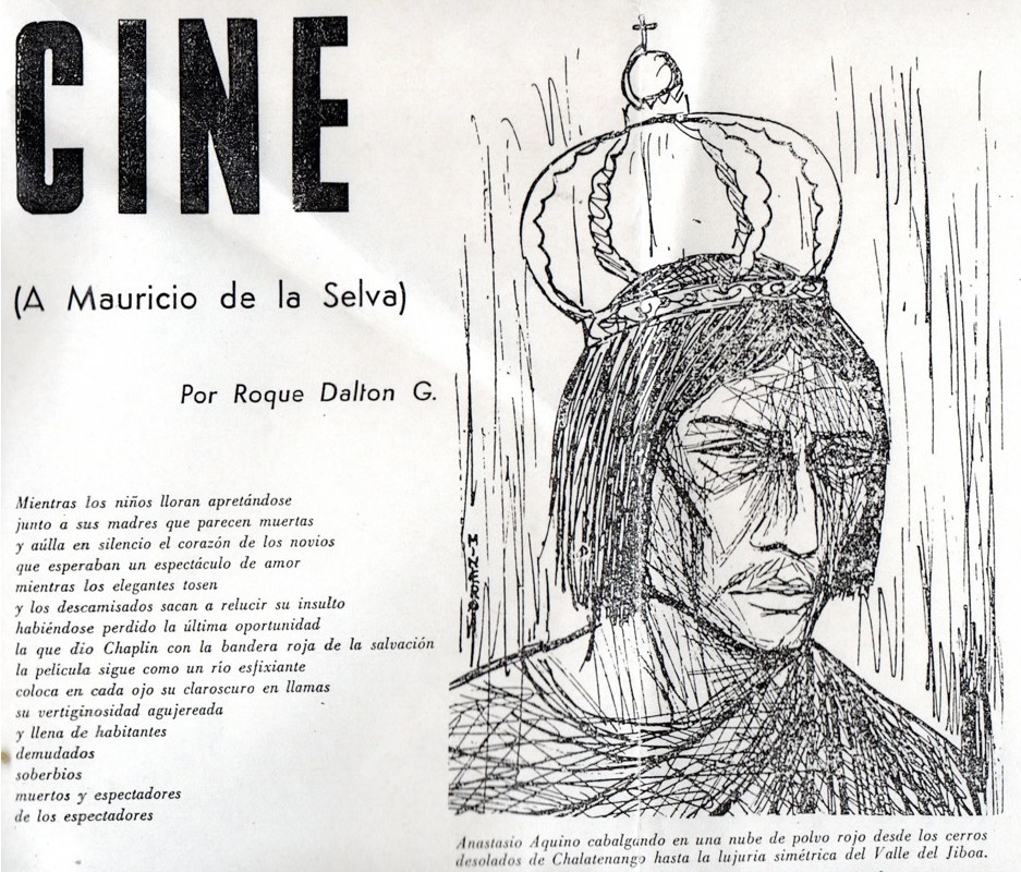 El breve relato «Cine«» («Vida Universitaria.  Publicación del Departamento de Extensión Cultural, Universidad de El Salvador», noviembre-diciembre de 1962: 8) de Roque Dalton G., cuestiona la manera en que su legado lo reciclan los ensayos académicos, la actualidad periodística sin un arraigo en su compromiso guerrillero.  Sería difícil identificar quiénes prosiguen la secuencia cronológica de su vida, arraigada en firmes creencias hechas ciencia irrefutable: teoría marxista —> militancia en el Partido Comunista —> guerrilla —> revolución —> modo de producción socialista.  Quién sabrá si su lectura de su obra vaticine el resurgimiento de la extrema derecha en el mundo actual, opuesto a su ideario.