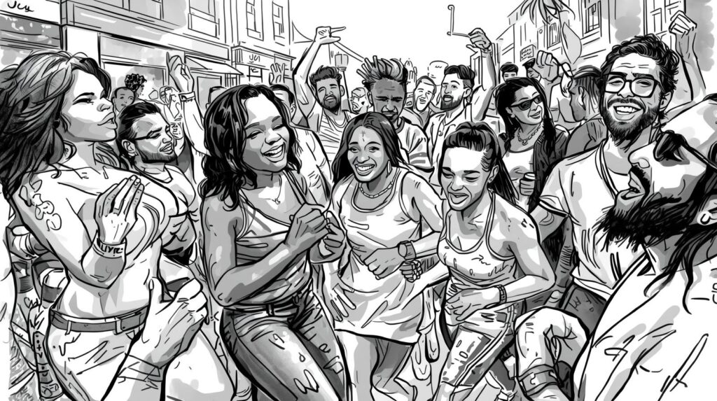En el Super Bowl, Bad Bunny revivió este espíritu con canciones como Safarea y Yo Perreo Sola, atrayendo 120 millones de espectadores y fusionando dembow con elementos pop. Esta proyección globaliza la fiesta, pero plantea interrogantes sobre su autenticidad: ¿permanece como contrapoder o se diluye en consumo masivo? (Graeber, s.f., p. 52).